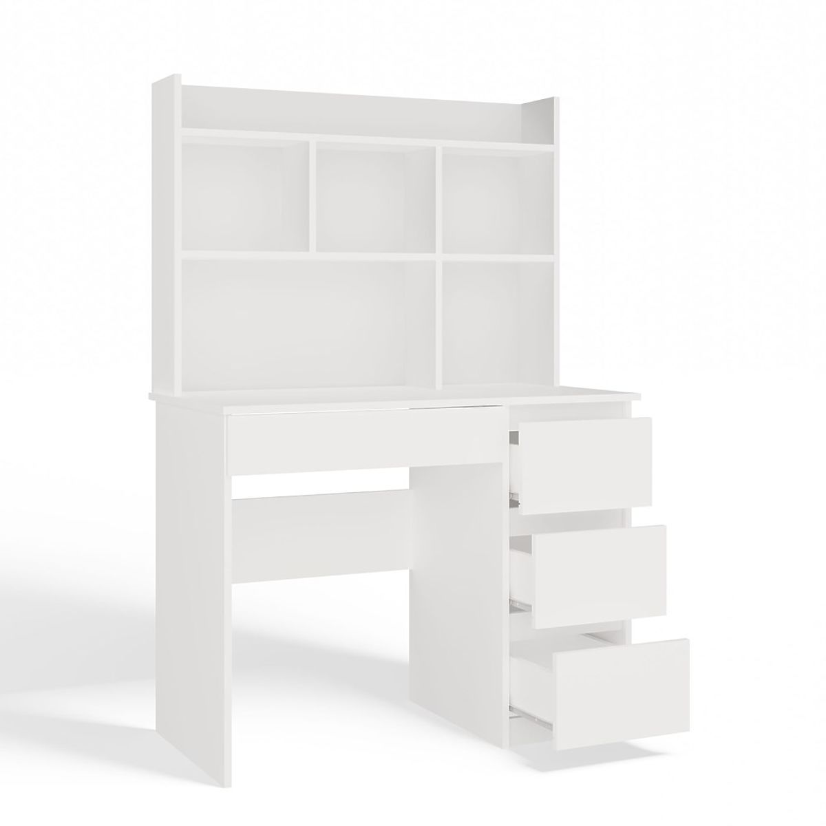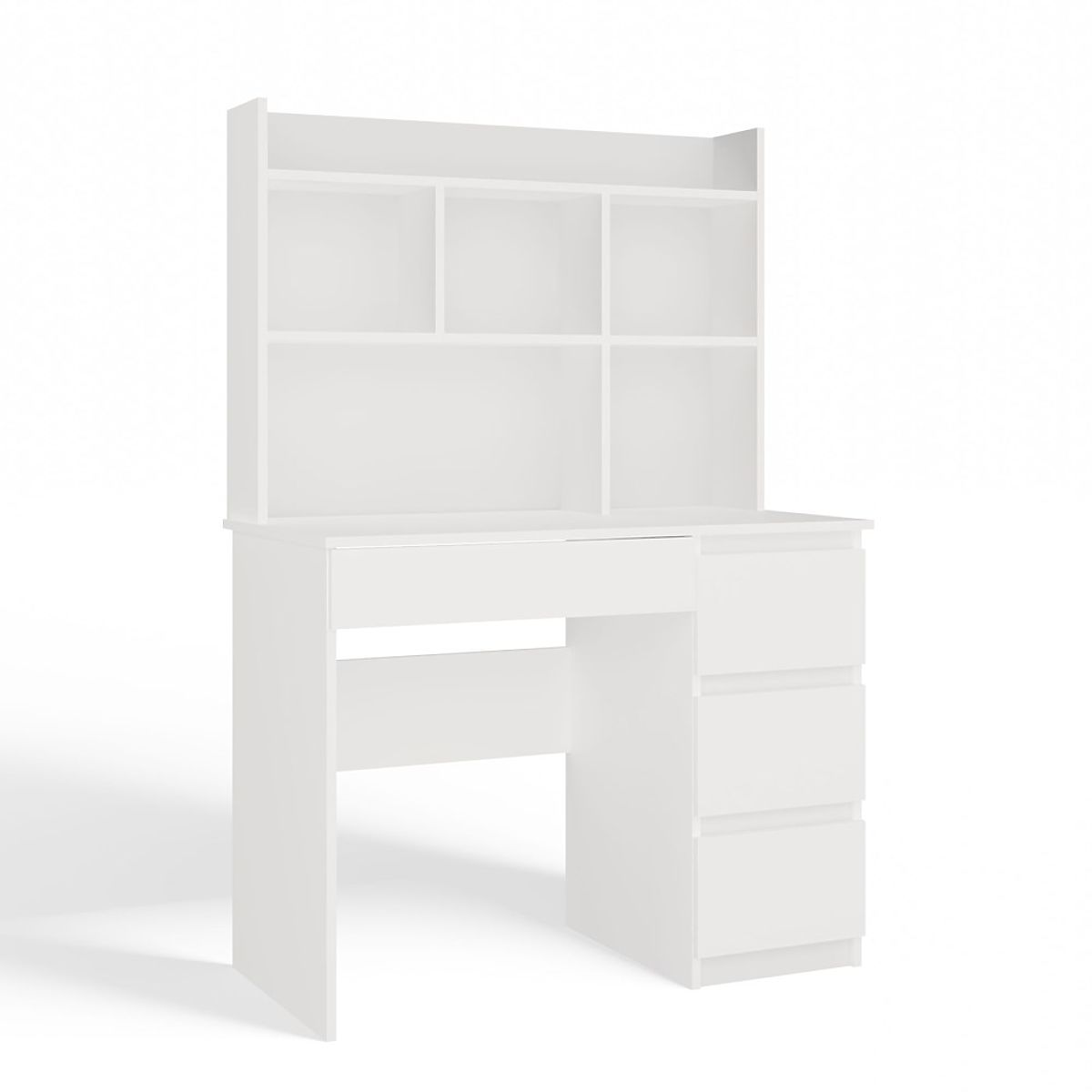 Biurko MIJAS Prawe z Nadstawką Biel Mat 4 Szuflady 4 Półki Do Biura Pokoju