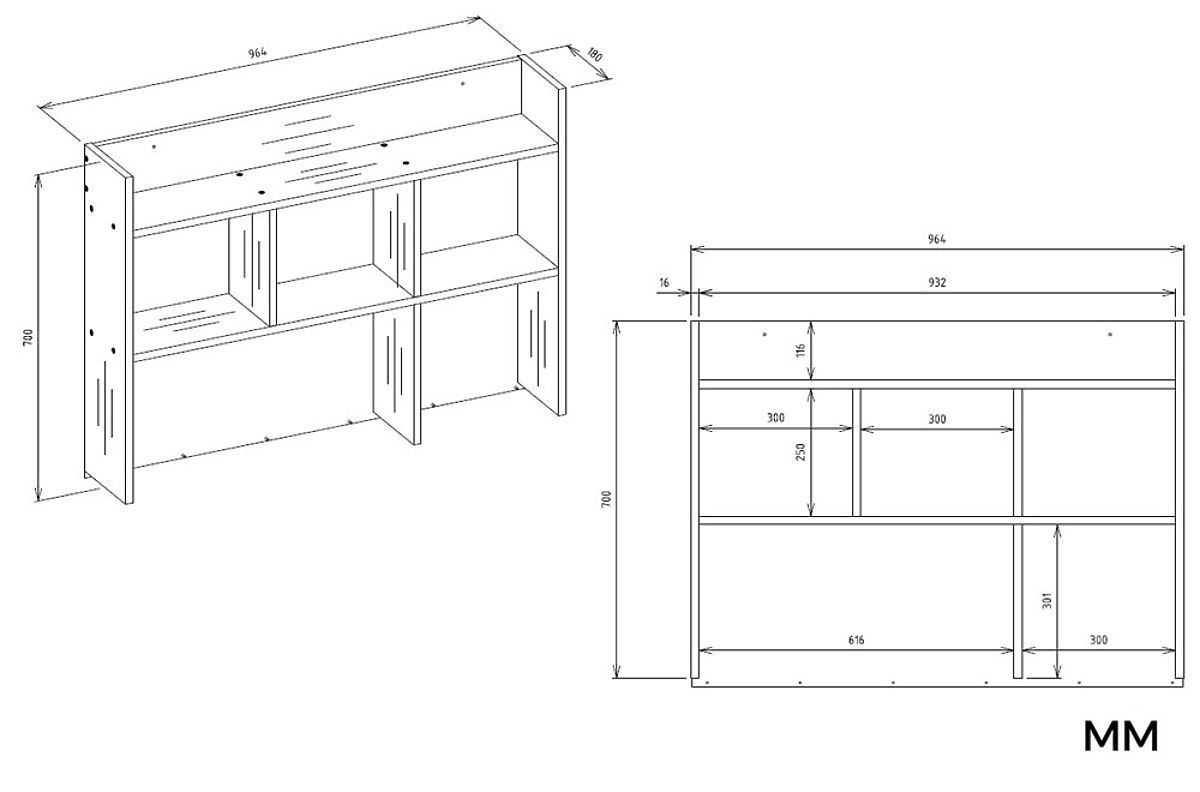 Nadstawka z otwartymi półkami – świetna na książki, zeszyty, dekoracje lub akcesoria