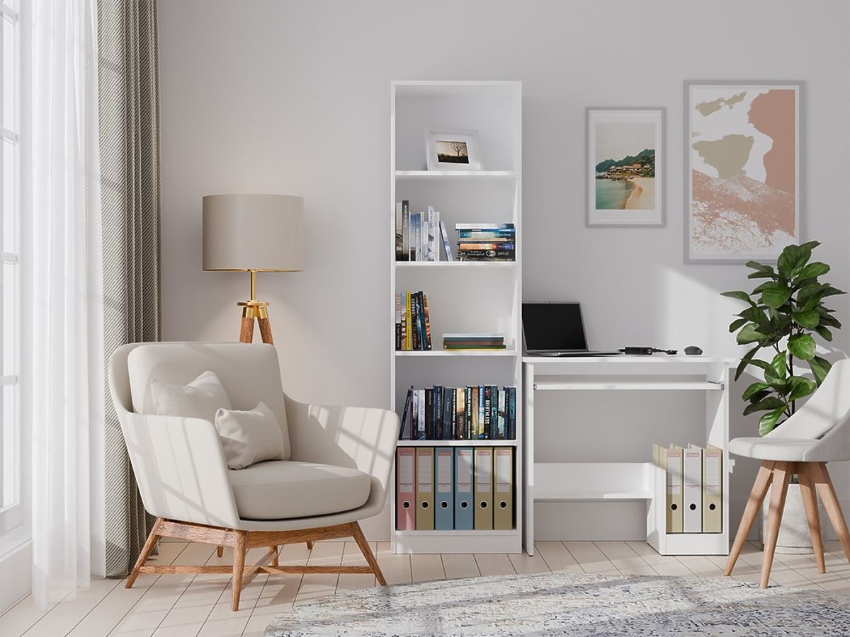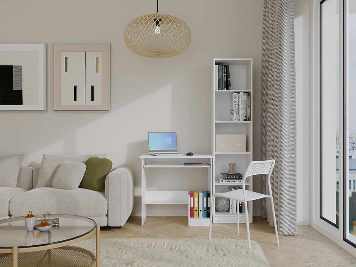 Psací stůl ROSA je kompaktní a zároveň velmi funkční nábytek, který se skvěle hodí do malých prostor - jak do dětského, studentského pokoje, tak i do domácí kanceláře. Díky minimalistickému designu a matné bílé barvě se stůl ideálně hodí do moderních interiérů a opticky zvětšuje prostor.