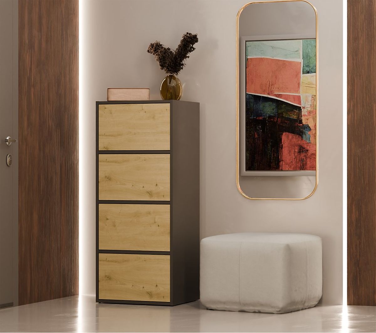 Komoda ALMA je kombinací funkčnosti a moderní estetiky. Skvěle se hodí do každé místnosti, nabízí praktický úložný prostor a dodává interiéru jemnou eleganci.