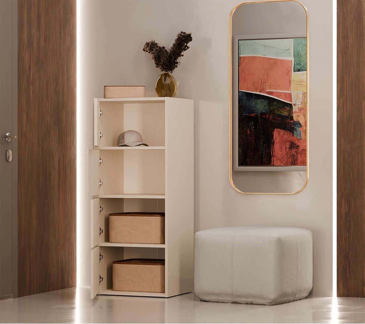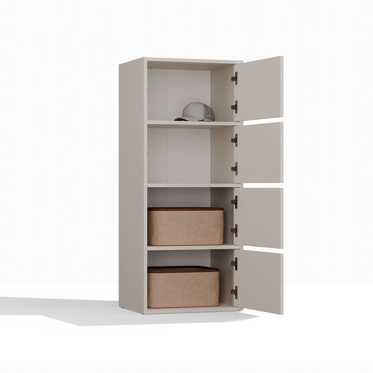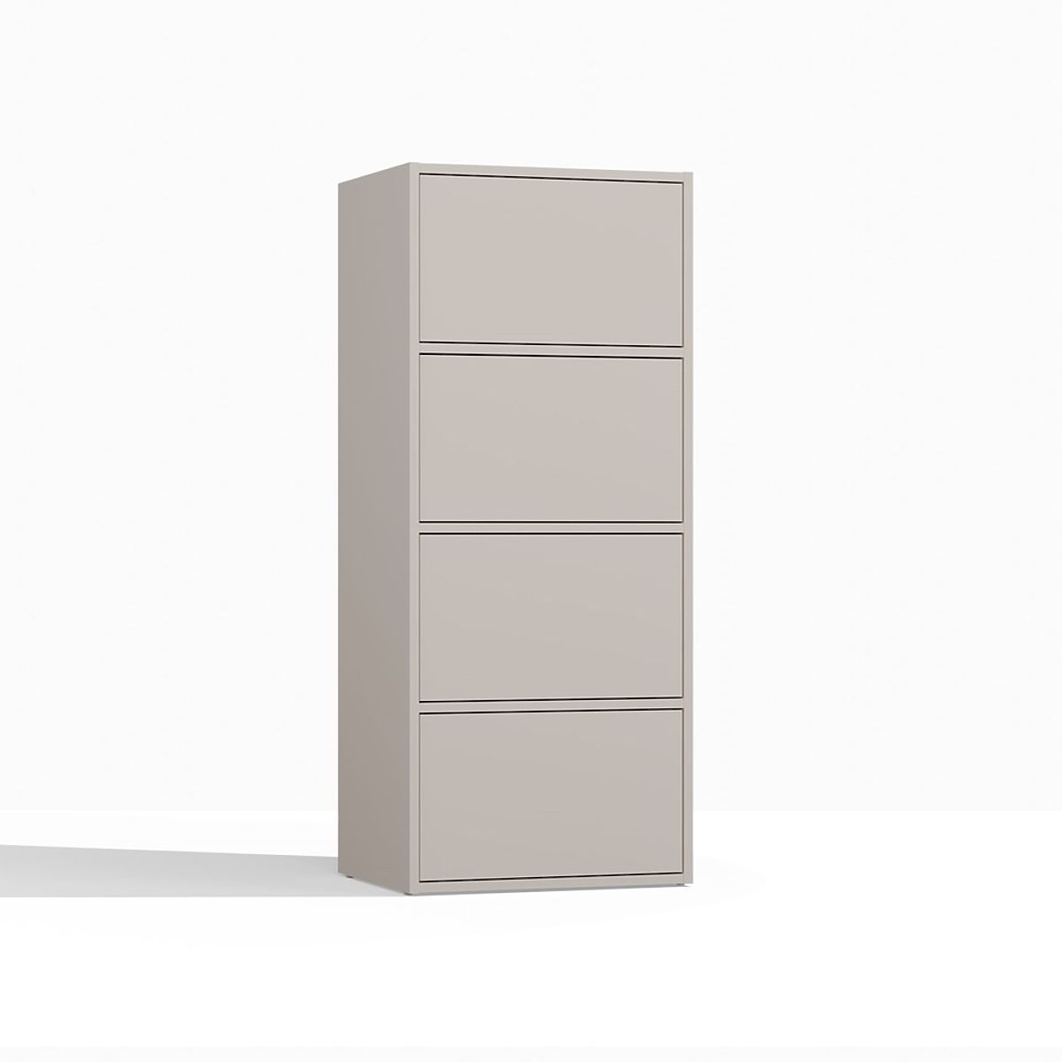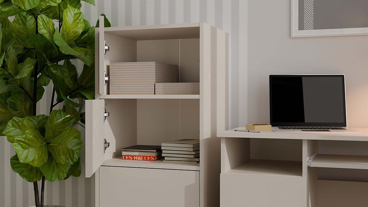 Díky prostorným policím skrytým za hladkými dveřmi, komoda poskytuje spoustu úložného prostoru a usnadňuje udržování pořádku v každém prostoru.