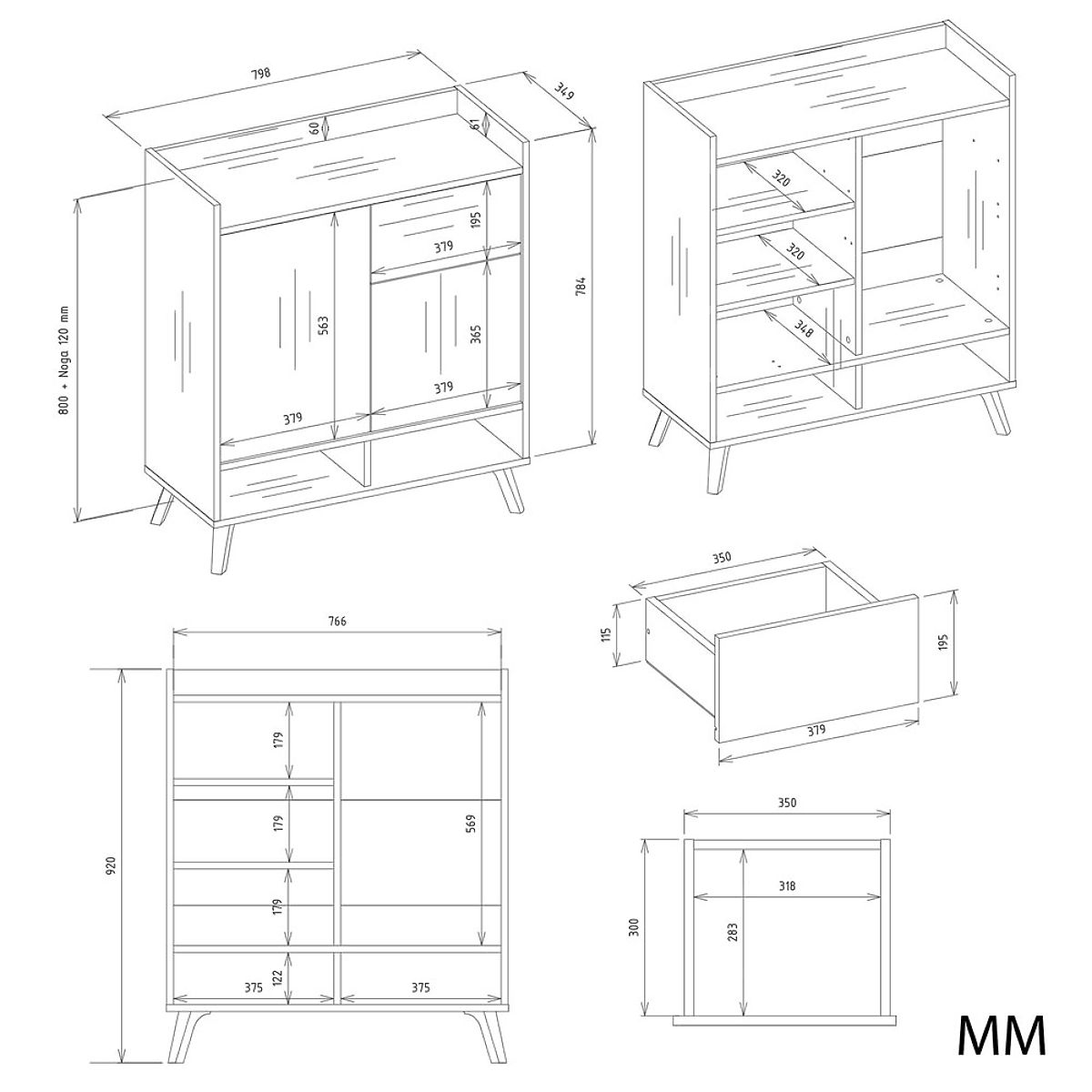 Jednoduchý tvar, čela bez úchytek a vysoké nohy ve skandinávském stylu dodávají komodě lehkost a moderní charakter.