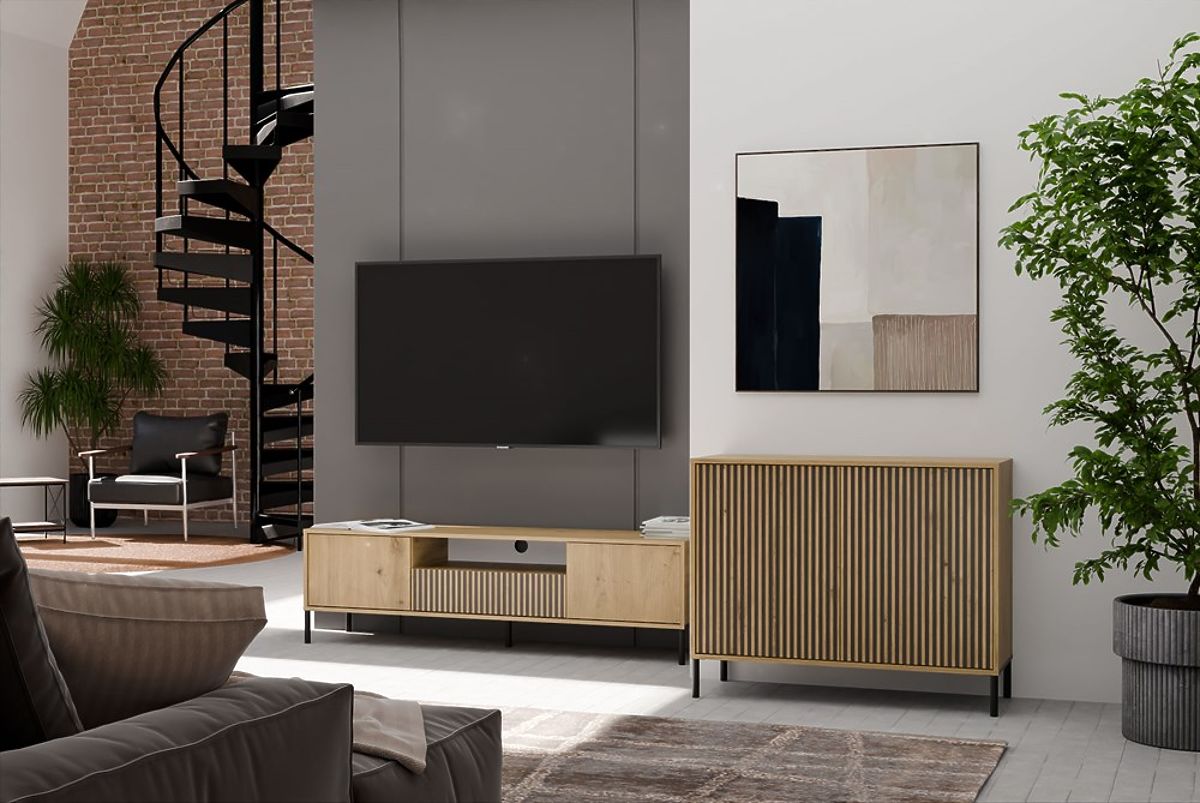 BARVA: DUB ARTISANELEGANCE A PRAKTIČNOST V JEDNOMKomoda KAMARO 2D SLIM je kombinací estetiky a funkčnosti, která se dokonale hodí do obývacího pokoje, hostinského pokoje, ložnice nebo pracovny. Díky rýhovanému přednímu panelu dveří (připomínajícímu lamely) získává nábytek moderní a originální vzhled, který se perfektně hodí do současných interiérů.