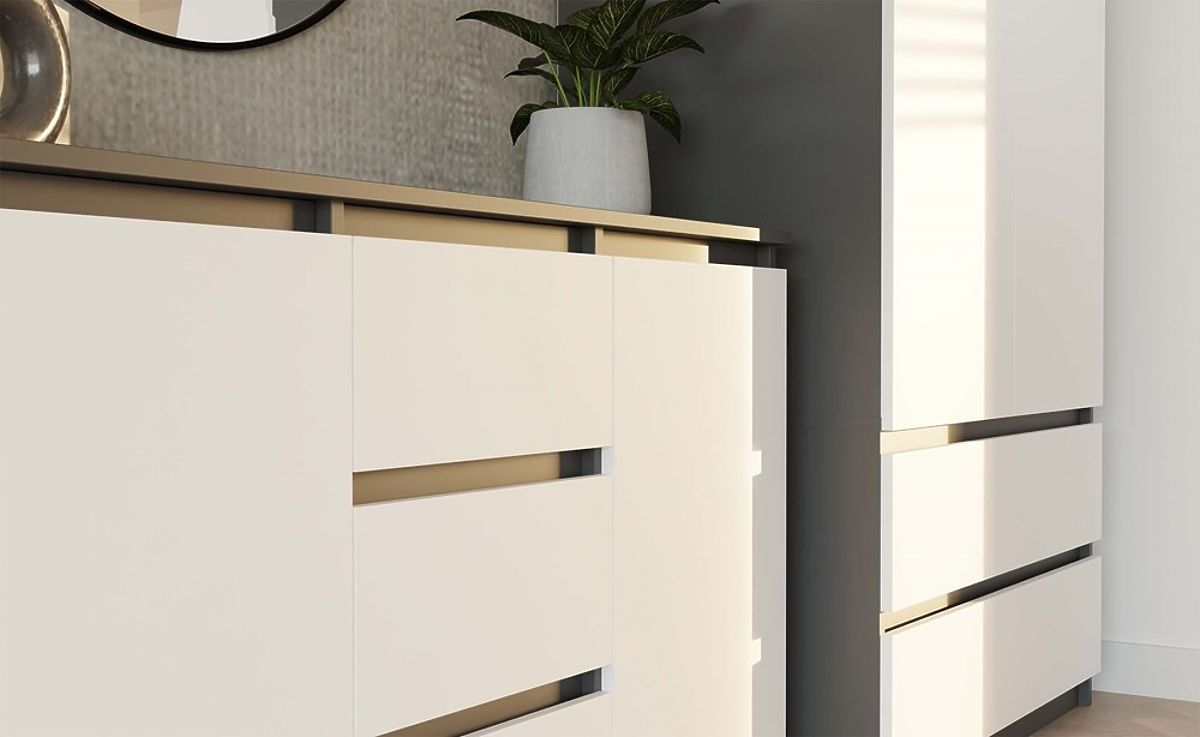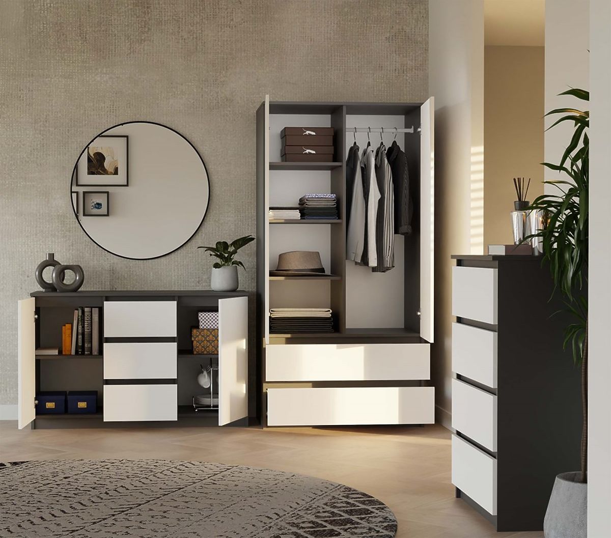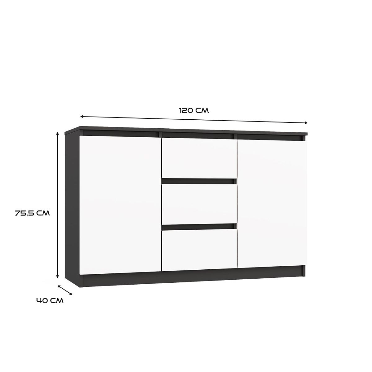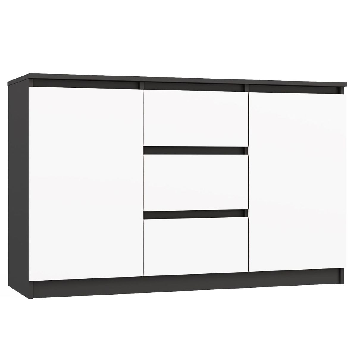 Komoda spojuje antracitový korpus s bílým čelem a nabízí úložný prostor. .. více