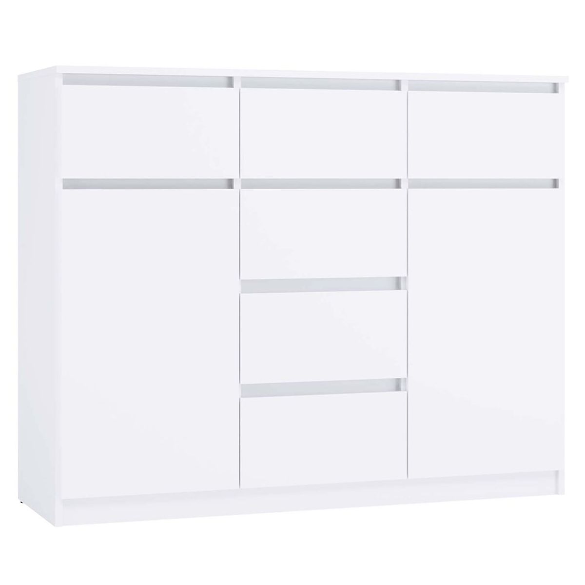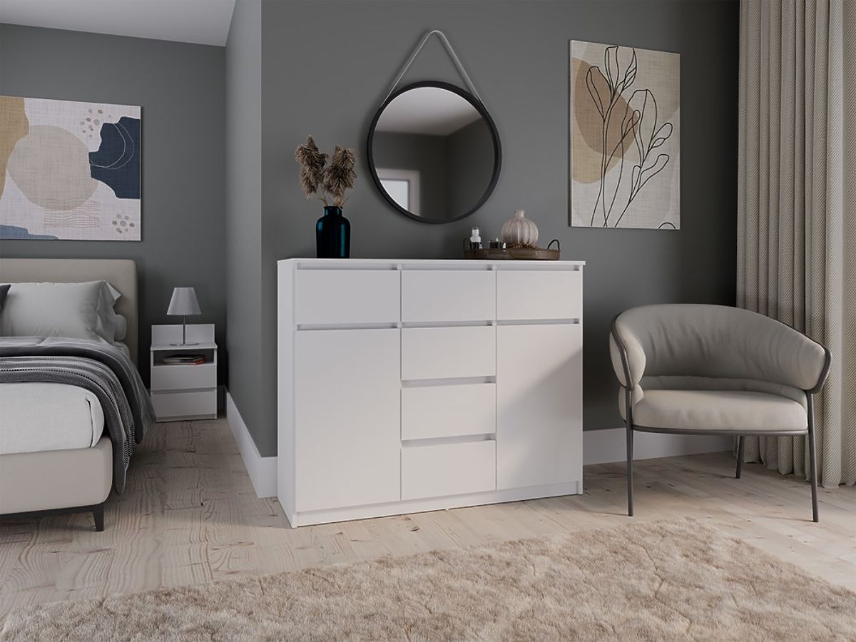 Prostornost a funkčnost: Komoda je vybavena 2 dveřmi a 6 prostornými zásuvkami, které pomohou s organizací vašeho prostoru. Ideální do ložnice, obývacího pokoje, dětského pokoje nebo předsíně – všude tam, kde potřebujete další úložný prostor.