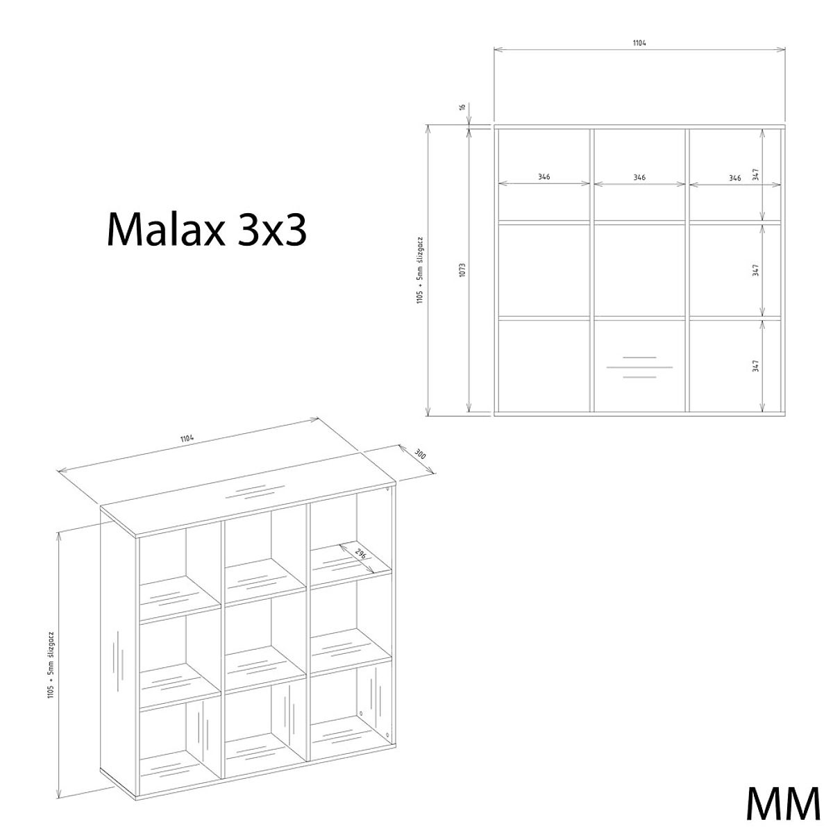 Regál MALAX 3x3 H s devíti komorami a pevným zadním panelem. .. více