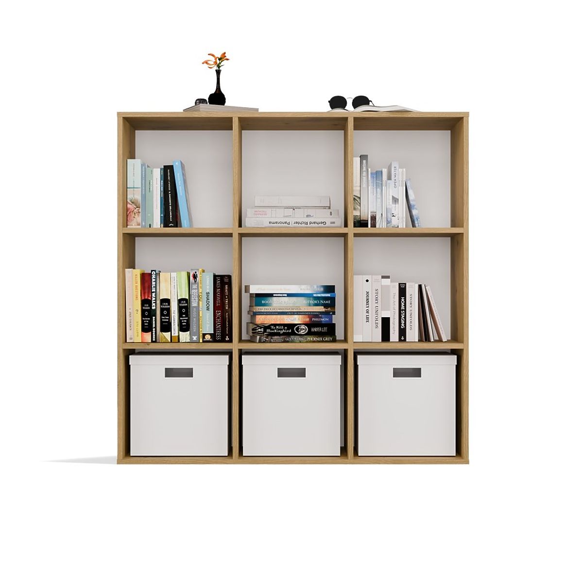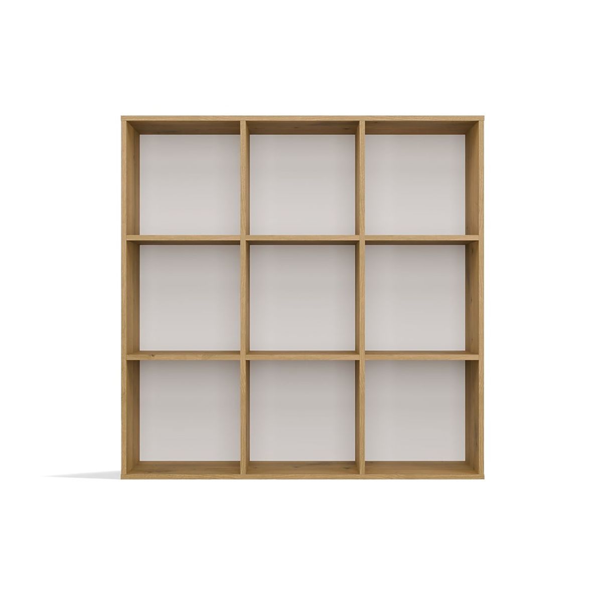 Babynabytek.cz » Knihovny, regály a police / Regály / REGÁL MALAX 3x3 H DUB ARTISAN S PEVNÝM ZADNÍM HDF POLICEMI 110x110 CM