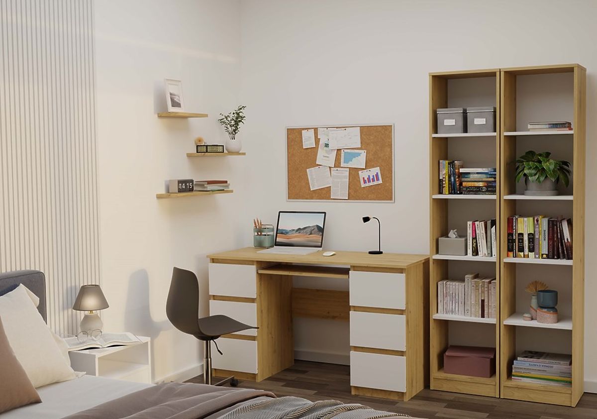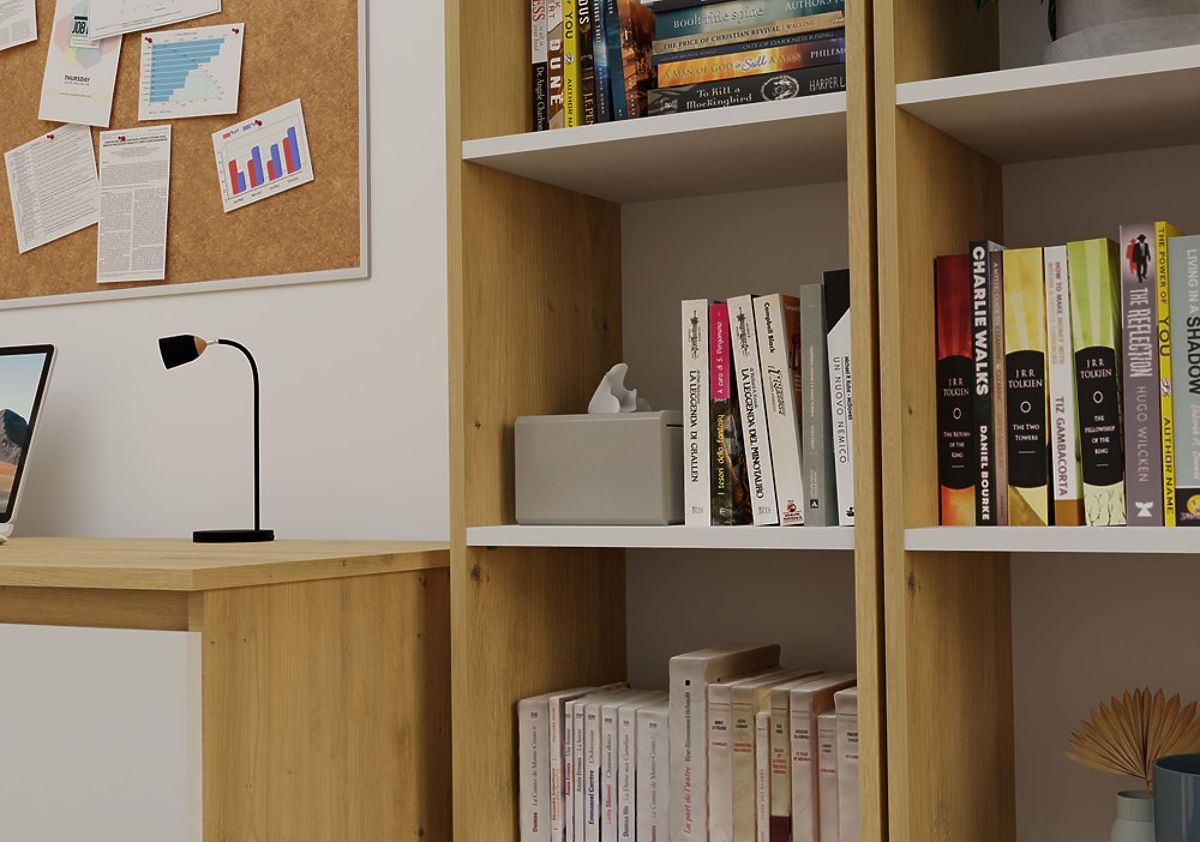 Regál R40 kombinuje dub artisan s bílými policemi pro moderní vzhled. .. více