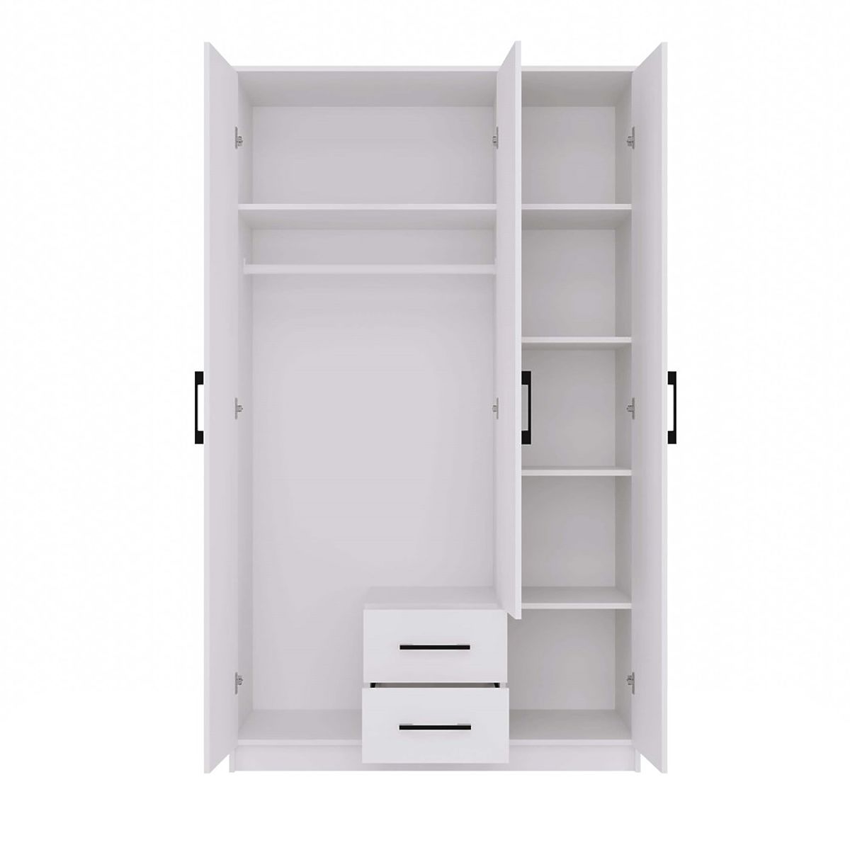 Skříň ROMANA 120 je dokonalou kombinací estetiky, funkčnosti a kompaktního designu. Díky promyšlenému vnitřnímu uspořádání poskytuje pohodlnou organizaci šatníku a její univerzální bílá barva umožňuje snadné začlenění do ložnice, dětského pokoje, kanceláře nebo předsíně.