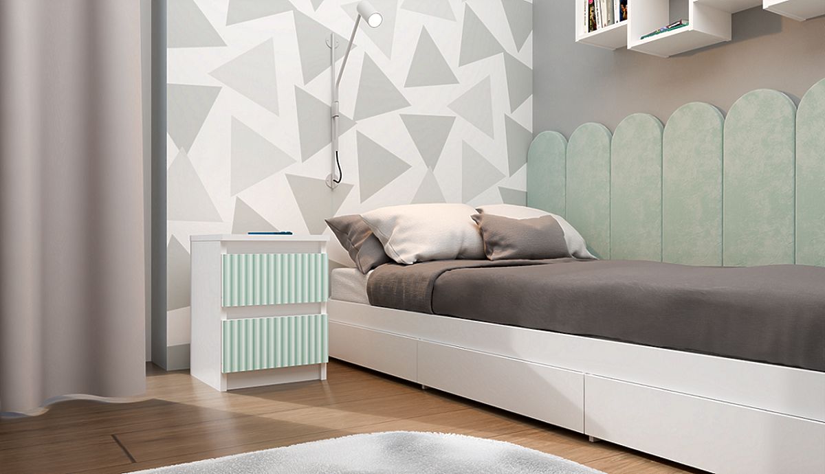 Série ARTESO s tištěnými, vertikálními vzory je ideálním nábytkem do dětského pokoje nebo pokoje pro mládež.