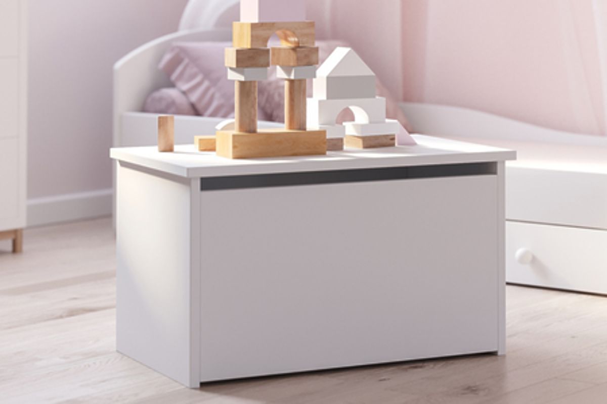 Truhla na hračky DARIA v univerzální bílé barvě je funkční nábytek, který usnadní udržení pořádku v pokoji vašeho dítěte. Její moderní design a solidní provedení zajišťují, že se dokonale hodí do každého interiéru, bez ohledu na styl zařízení.