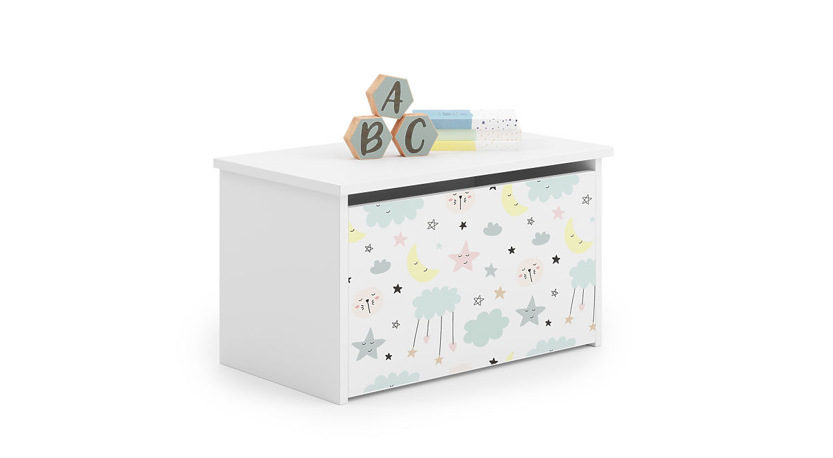 Babynabytek.cz » Dětský nábytek / Komody a skříně / Truhly na hračky / Truhla na hračky Daria bílá s potiskem Hvězdičky