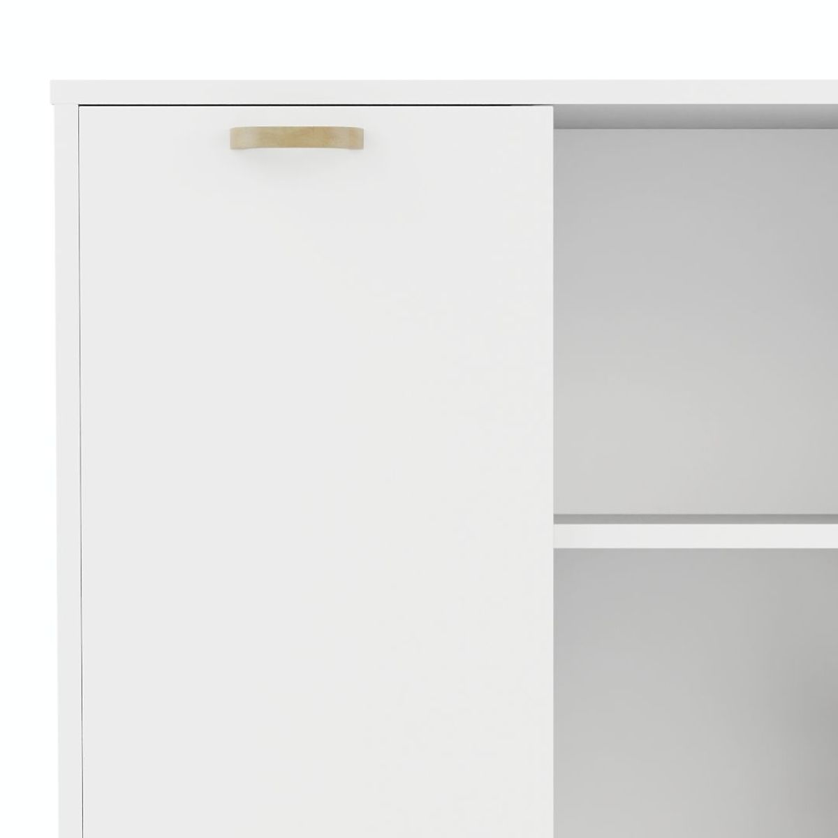 Skříň FONDI je mimořádně praktický nábytek, který kombinuje jednoduchost s estetikou inspirovanou skandinávským stylem. Díky elegantnímu designu se skvěle hodí do moderních interiérů, přidává jim lehkost a svěžest. Její prostorné police umožňují vystavení oblíbených dekorací, knih nebo fotografií, což umožňuje personalizaci interiéru a dodání unikátního charakteru. Praktické úložné prostory pomáhají udržovat pořádek a nabízejí místo pro uložení různých předmětů.