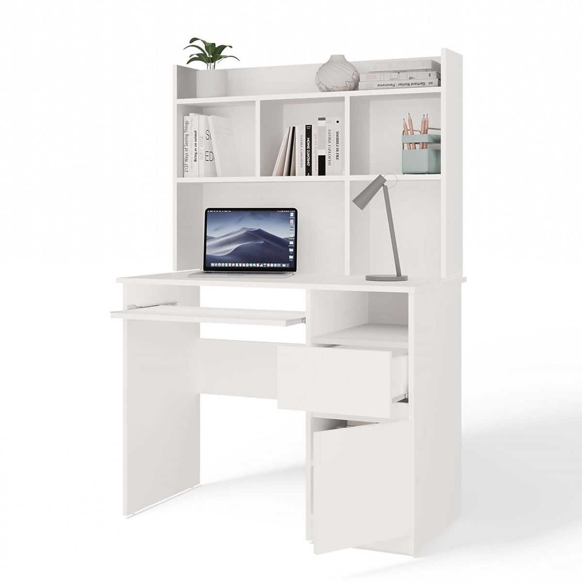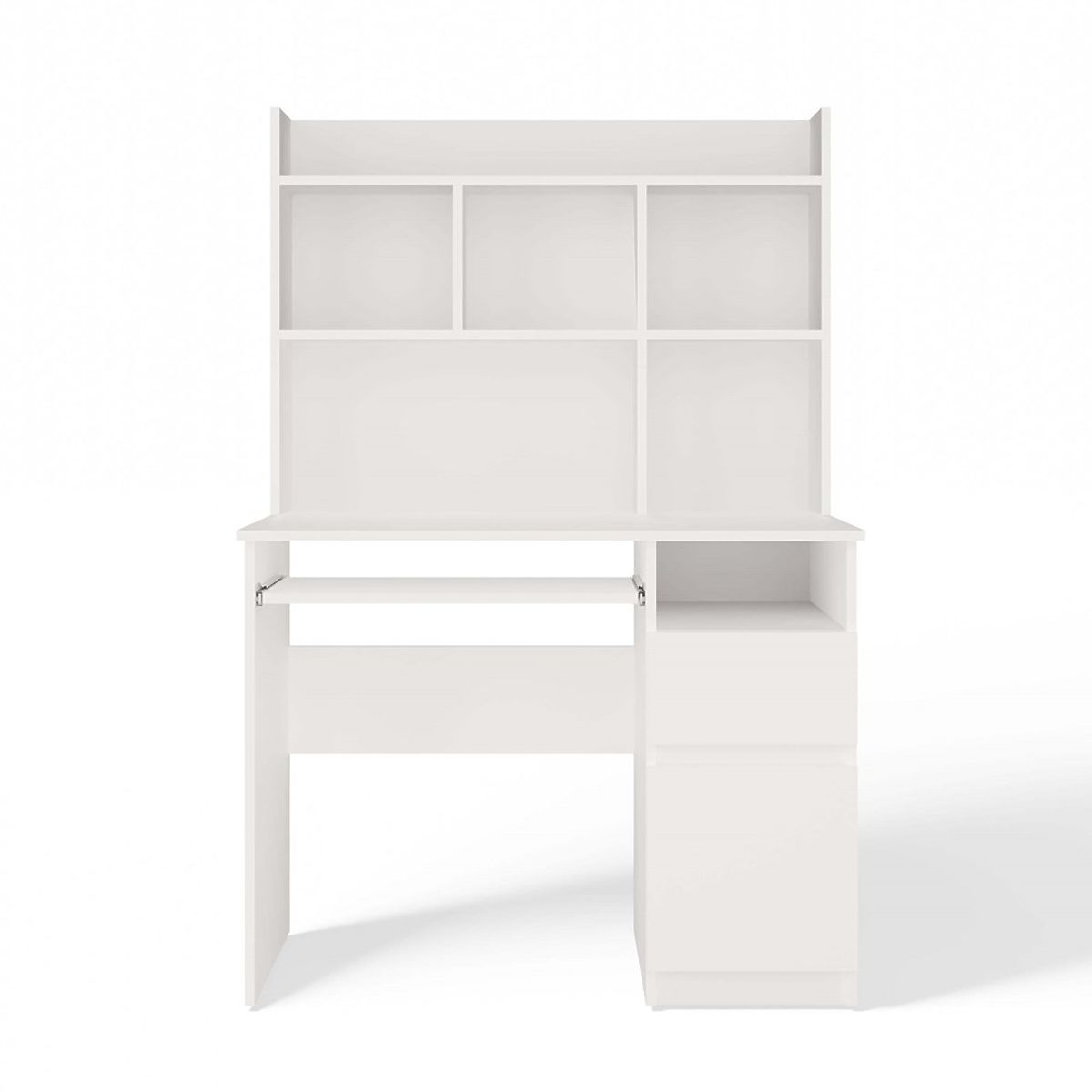 Moderní design, matná bílá a praktické uspořádání úložného prostoru činí tento nábytek ideálním jak pro mládežnický a dětský pokoj, tak pro domácí kancelář.