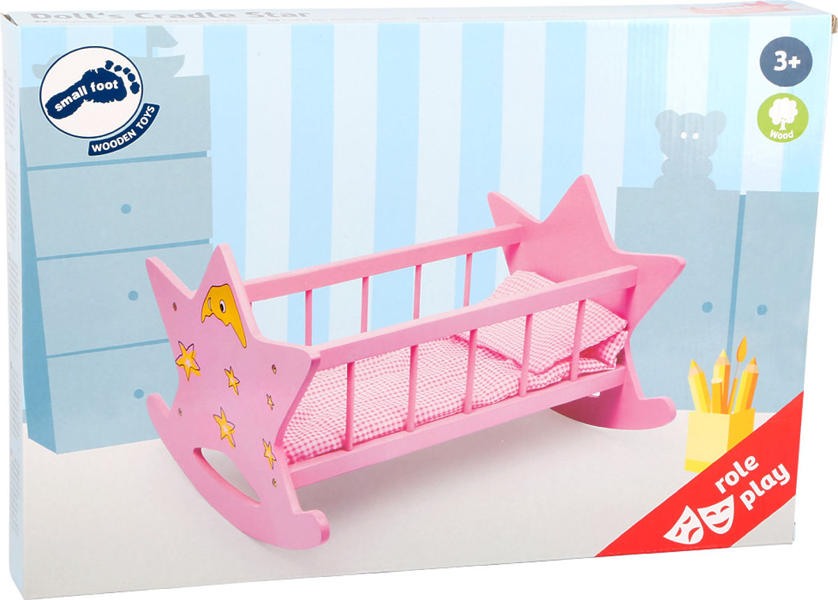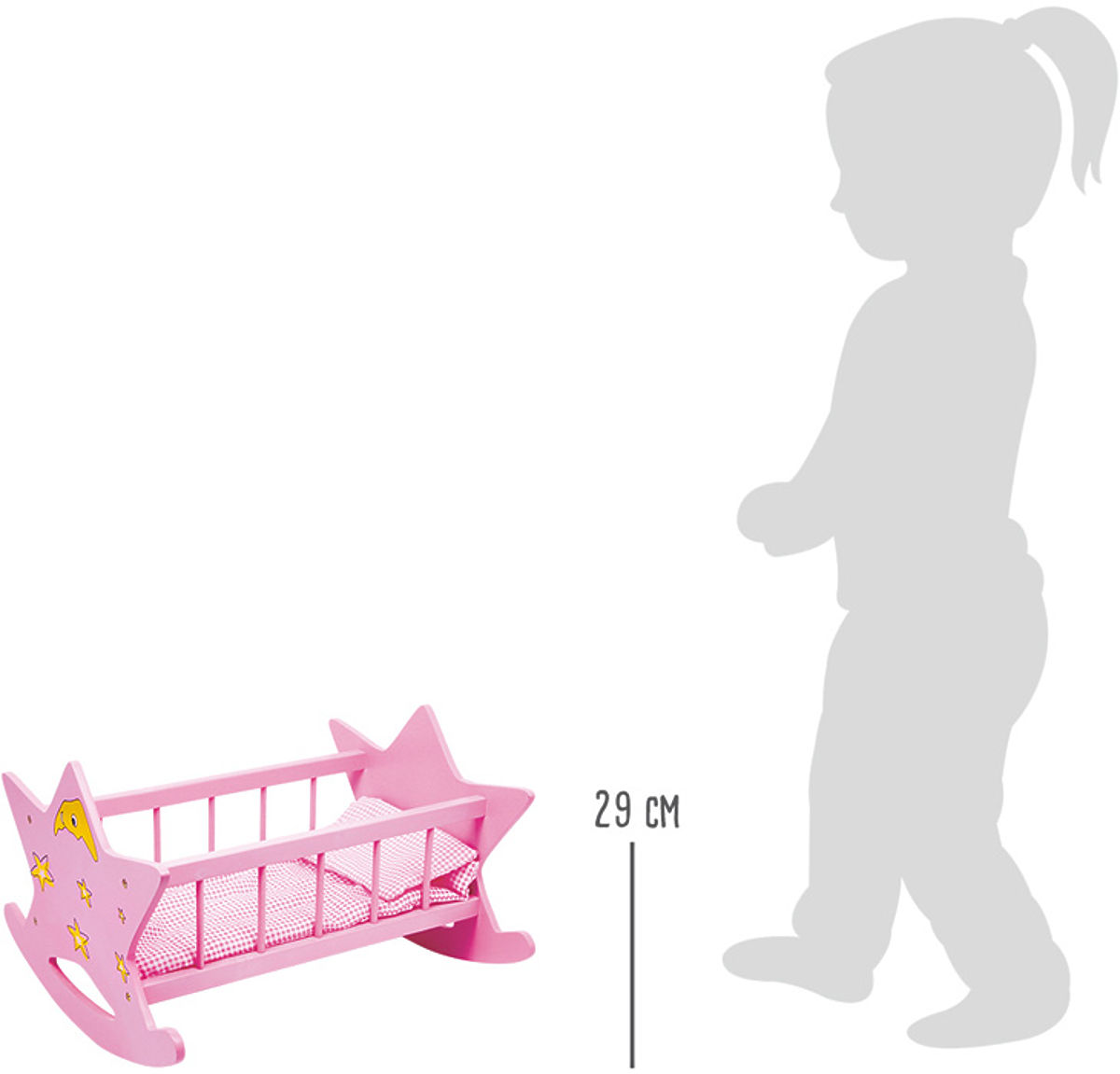 Pozor všichni pozorovatelé hvězd. S touto skvělou kolébkou pro panenky z robustního dřeva se děti s panenkami houpají do svých snů. Přední a zadní část kolébky má design hvězdné oblohy. Hlavní vlastnosti: podporuje aktivní hraní a trénuje sociální dovednosti stabilní konstrukce, kvalitní zpracovánívhodná pro školky