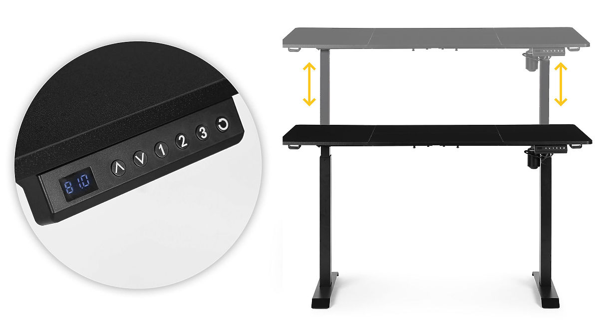 PLNÁ KONTROLA NA DOSAH RUKYIntuitivní ovládací panel s tlačítky nahoru/dolů umožňuje přesně nastavit výšku desky stolu, a tři číselná tlačítka umožňují uložit oblíbené pozice. Navíc je možné nastavit připomenutí změny pozice každých 30, 45 nebo 60 minut, což podporuje udržení zdravých pracovních návyků.