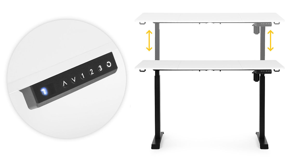 PLNÁ KONTROLA NA DOSAH RUKYIntuitivní ovládací panel s tlačítky nahoru/dolů umožňuje přesně nastavit výšku desky, a tři číselná tlačítka umožňují uložení oblíbených poloh. Navíc je možné nastavit připomenutí změny polohy každých 30, 45 nebo 60 minut, což podporuje udržení zdravých pracovních návyků.