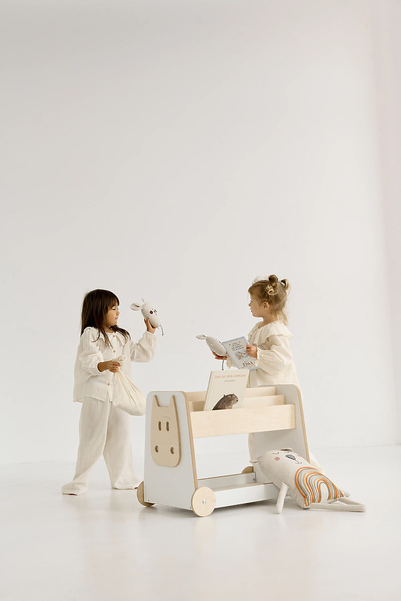 Dřevěný regál na hračky s kolečky je praktickým a funkčním doplňkem do dětského pokoje. Díky čtyřem kolečkům jej lze snadno přemisťovat bez námahy, a to i samotným dítětem. Oboustranné provedení umožňuje pohodlný přístup ke knihám i hračkám z obou stran, což podporuje samostatnost dětí při hraní i uklízení. Regál nabízí dostatek úložného prostoru pro knihy, hry i oblíbené hračky a pomáhá udržovat v dětském pokoji pořádek. Dítě se přirozeně učí organizaci a ukládání věcí na své místo.