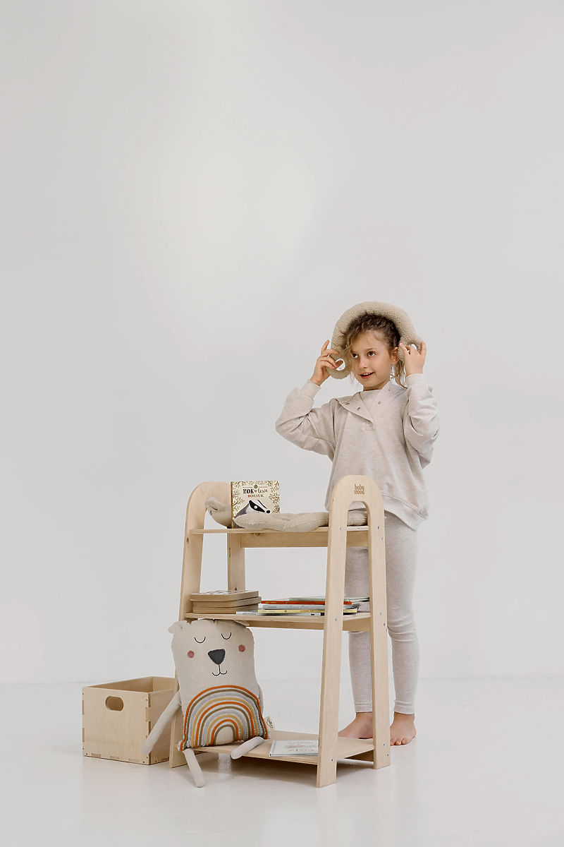 Otevřený regál SLIM S je ideálním řešením pro dětský pokoj, kde má čtení své pevné místo. Spojuje jednoduchý, čistý design s vysokou praktičností a vytváří příjemný prostor, který děti přirozeně motivuje ke čtení a objevování světa knih. Díky otevřeným policím mají děti své oblíbené knížky vždy na dosah ruky a mohou si je samostatně vybírat i uklízet. Výška regálu je přizpůsobena dětem, což podporuje jejich samostatnost, zodpovědnost a smysl pro pořádek. Regál se skvěle hodí do každého dětského interiéru a stane se přirozenou součástí každodenních rodinných rituálů, jako je společné čtení.