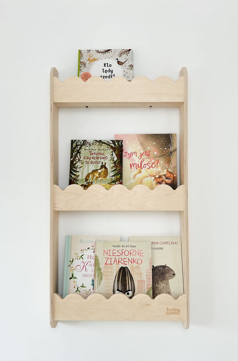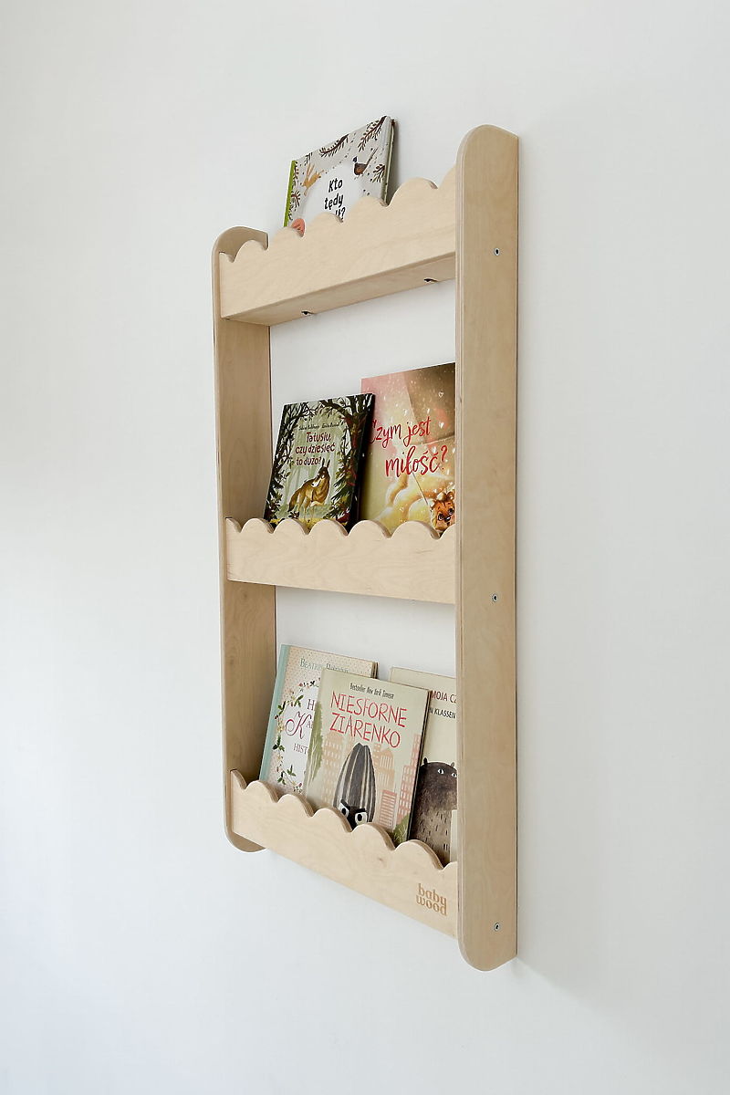 Regał ścienny WAVE M v přírodní barvě je praktická a dekorativní knihovna na stěnu, která pomáhá udržet pořádek v dětském pokoji, aniž by zabírala prostor na podlaze. Ideální je pro knihy, hračky, dekorace či drobné předměty vašeho dítěte. Montáž na stěnu umožňuje mít volnou podlahu pro hru a další aktivity. Přírodní vzhled a kvalitní zpracování police dodávají dětskému pokoji útulný akcent. Zaoblené hrany a hladké povrchy zajišťují bezpečné používání i pro malé děti.