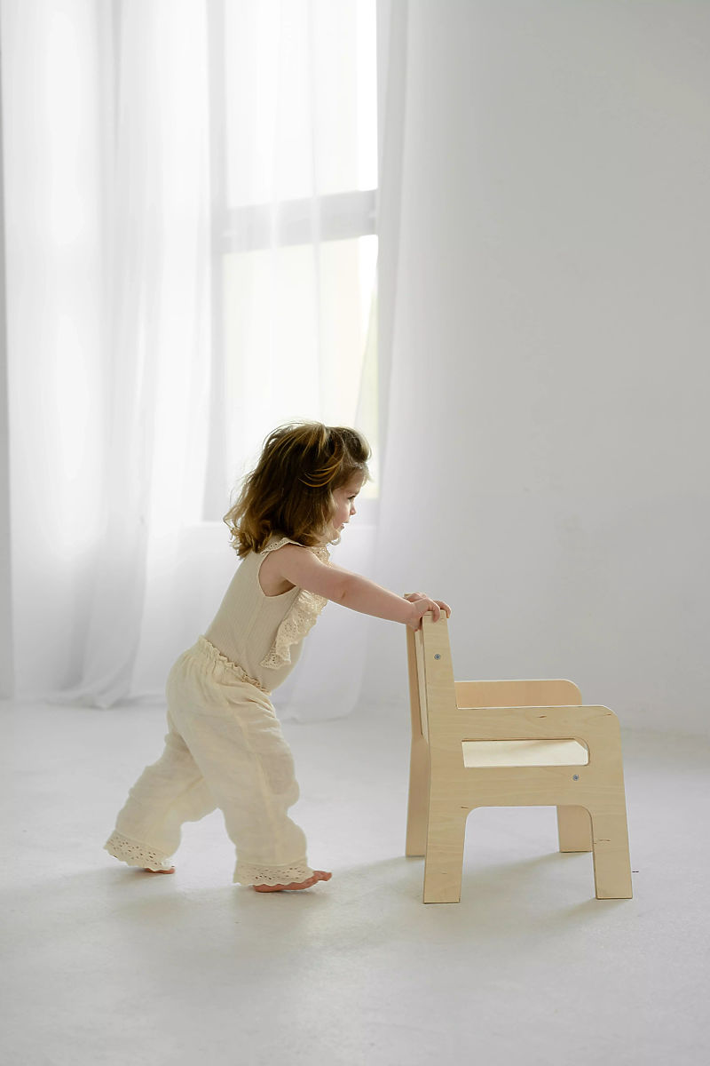 Dřevěná dětská židlička je navržena pro děti různého věku – poslouží jak ročnímu dítěti, které objevuje svět, tak i staršímu, kreativnímu předškolákovi. Poskytuje pevnou oporu zad a zároveň zajišťuje pohodlné sezení při hraní, kreslení nebo stolování. Skvěle se uplatní také v kuchyni nebo koupelně – dítě si může stoupnout na sedák a snadno dosáhne k pracovní desce či umyvadlu. Všechny hrany jsou pečlivě zaoblené, aby byla zajištěna maximální bezpečnost malých uživatelů.