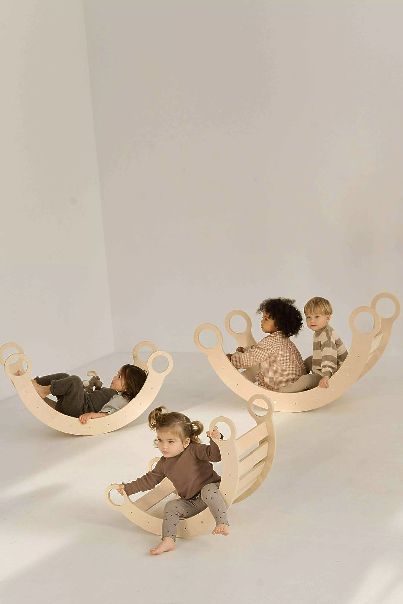 Stylová dřevěná Montessori houpačka S v přírodní barvě je ideálním doplňkem do dětského pokoje nebo herny. Tento multifunkční set umožňuje nejen bezpečné .. více