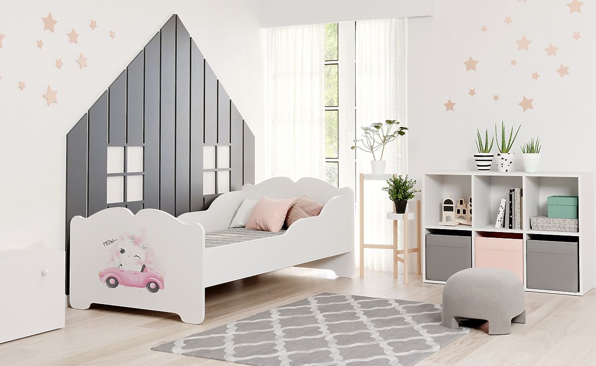Dívčí postel ANNA 160x80 s kočičím potiskem a matrací. .. více