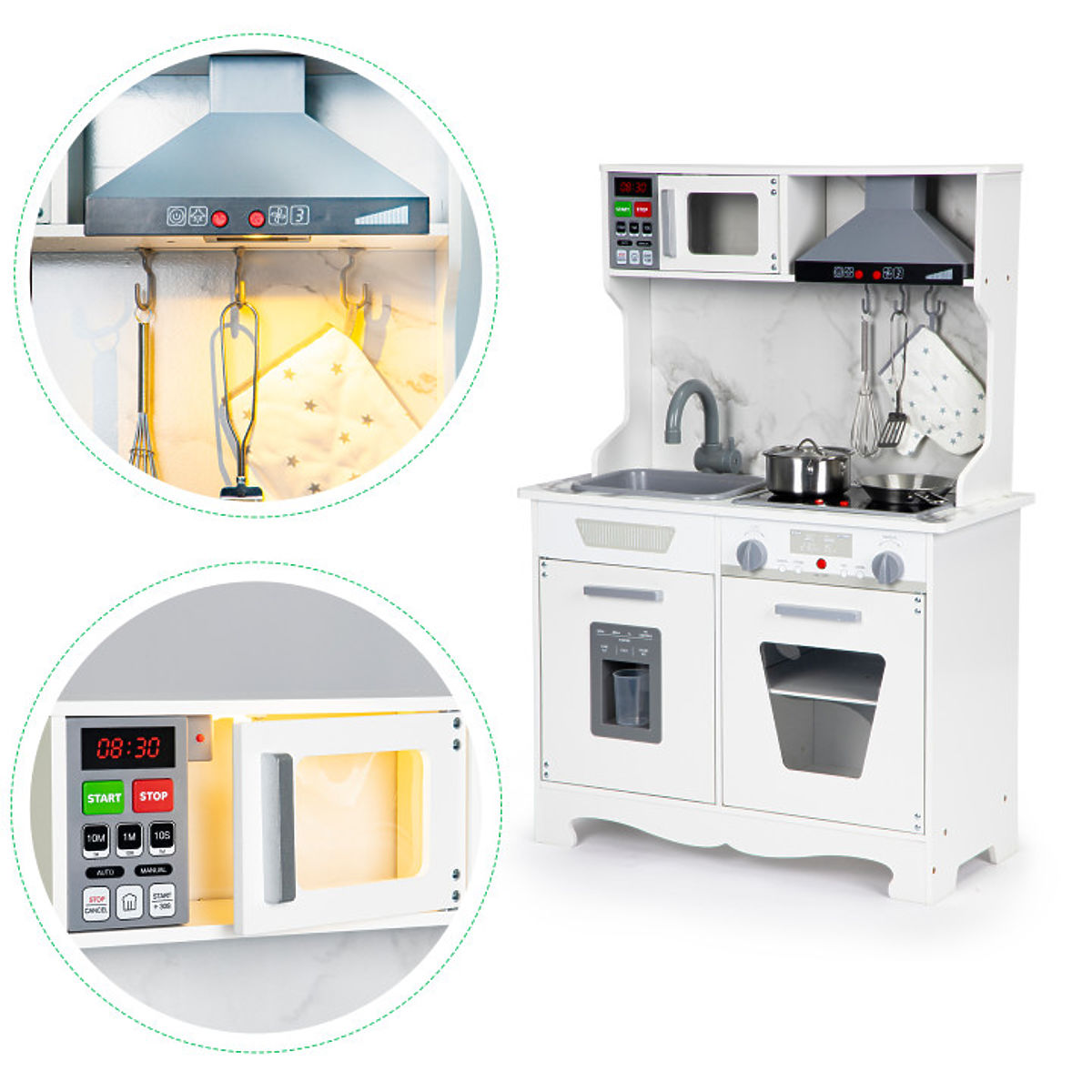 Dřevěná kuchyňka pro děti s LED a zvukovými efekty, včetně kovových doplňků. .. více
