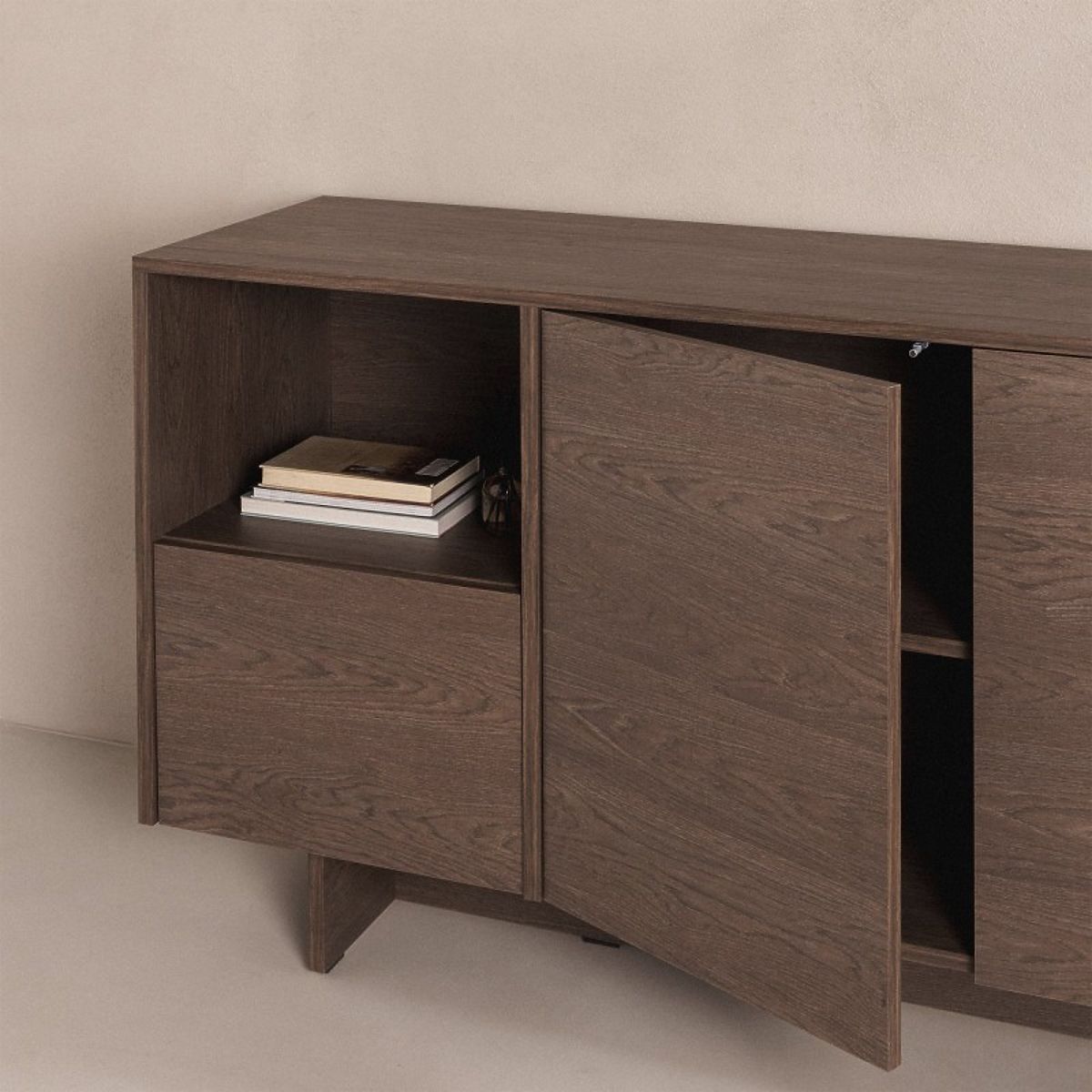 Komoda Kanso představuje čistou formu a nadčasový minimalismus. Jemné provedení a hladké čelní plochy bez úchytek z ní dělají nejen funkční úložný prostor, ale také designový prvek interiéru. Elegance, jednoduchost a uvědomělá volba v jednom.