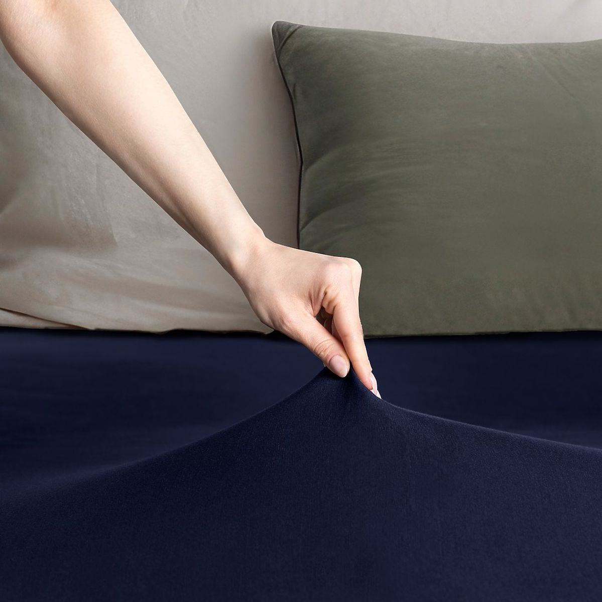 Prostěradlo z kolekce Amber v námořnické modré barvě z materiálu jersey. .. více