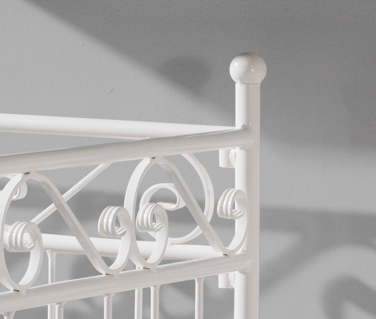 Nádherná kovová postel do dětského pokoje, kterou zdobí dekorační prvky jako srdce na boku postele a kované části typu "S". Originální tvar postele - pohovky - tvoří kulaté zakončení postele.Pohovka je perfektním doplňkem do pokoje pro děti/mládež, do obývacího pokoje, a jistě najde své využití také v létě na zahradě či terase. Postel je vyrobena z vysoce kvalitní oceli. Kovový rám se skládá ze čtyř částí spojených šrouby, které činí konstrukci velmi pevnou a kvalitní. Nohy postele jsou vyrobeny z kovu kruhového průřezu o průměru 27 mm a příčky mají průměr 21 mm. Výplně tvoří kovové tyče o průměru 8 mm. Postel je dodávána spolu s dřevěným laťkovým roštem.