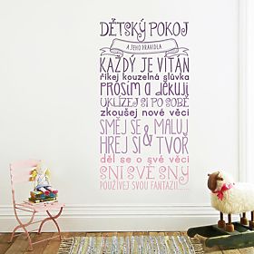 Velice orginální interierová samolepka Pravidla dětského pokojíčku je orginální doplněk do dětského pokojíčku.