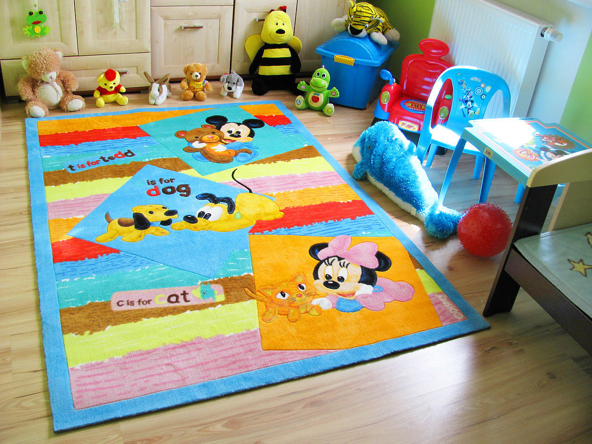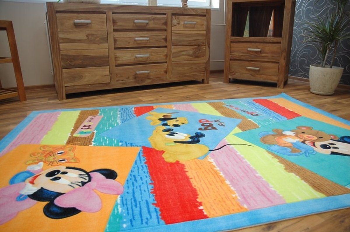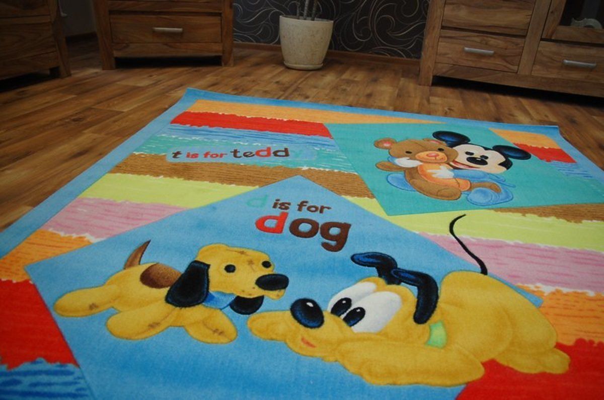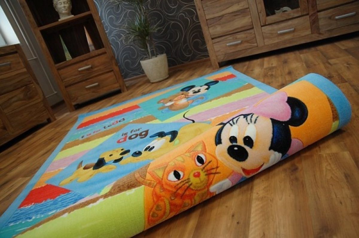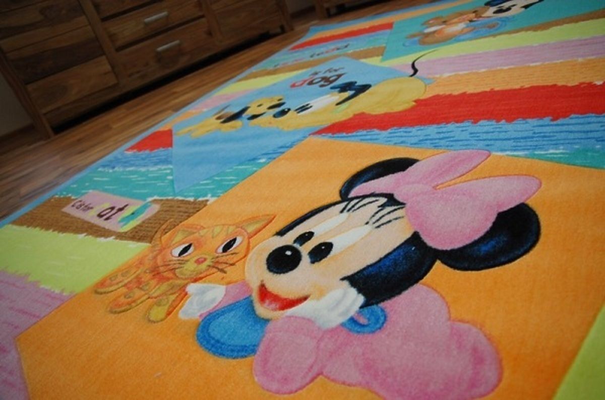 Krásný dětský koberec do pokojíčku Disney s motivem malého Mickeyho. Kobereček má originál licenci Disney a je nádherně pestrobarevný! Hustota stř. vlasu 114.000 pkt./m2 hmotnost 2,40 kg/m2, složení 100% akryl.(termoplastický)