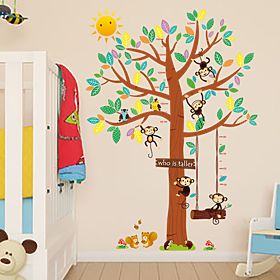 Tento barevný strom s roztomilými opičkami bude bavit všechny malé děti, které si na něm můžou značit, kolik povyrostly.