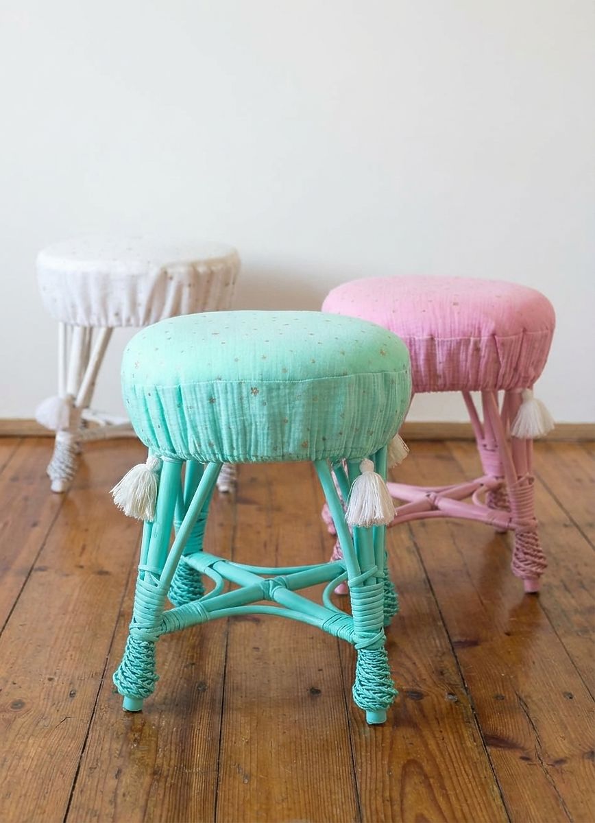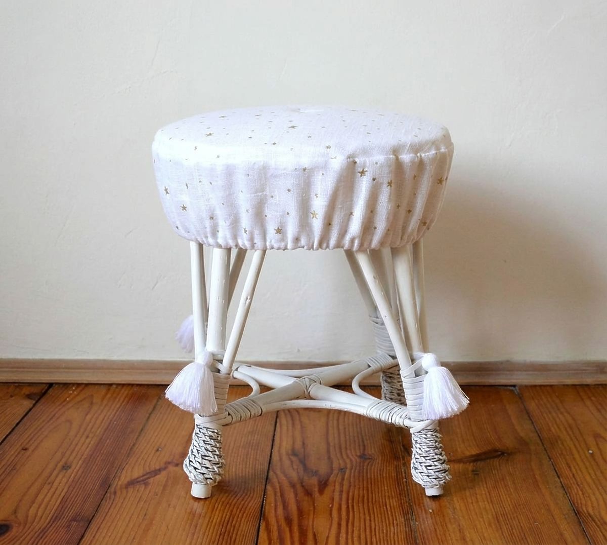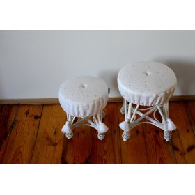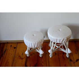 Proutěné taburet, který se vyznačuje vysokou pevností a odolností proti poškození. Natřené na bázi vodní barvy, bez přídavku rozpouštědla, takže je bezpečný pro děti a životní prostředí.