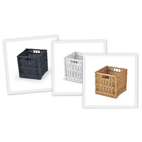 Úložný proutěný box Woody společně s regálem Metro, Caboto, Luini vytváří hravý a praktický nábytek do každého moderního interiéru.