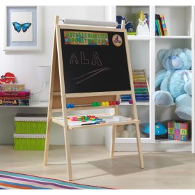 Krásná dětská tabule v modré barvě se bude líbit hlavně klukům. Tabule podporuje kreativní činnost dětí, možnost psaní křídou nebo fixem (na papíře nebo na magnetické straně tabule). Je také skvělým pomocníkem školáků! Děti si můžou z magnetických písmenek tvořit slova, poznávat hodiny nebo učit se na počítadle.