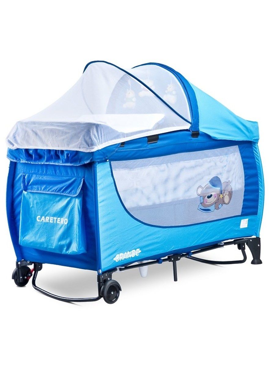 Luxusní cestovní postýlka CARETERO Grande 2016 s novým moderním vzhledem, větší přebalovací podložkou a pevnějším materiálem. Je určena pro děti do 15 kg.